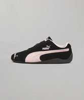 スピードキャットは、1999年に誕生し、80年代から90年代にかけてF1グランプリのドライバーが履いていた耐火レーシングシューズをベースにしたライフスタイルシューズです。レーシングにインスパイアされたなめらかなラインと空気力学に基づいたデザインにより、ファッションやスニーカーカルチャーに衝撃を与えてきました。今回、再びリリースされるスピードキャットOGは、F1レーシングチームを彷彿とさせる豊富なカラー展開とスウェード素材をふんだんに使用した仕上がりとなっています。2000年代初頭のレーシングウェアに敬意を表し、つま先には“プーマキャット”の刺繍が施され、シュータンとフォームストリップの上にはゴールドのロゴがあしらわれています。