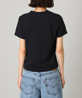 ・胸元とバックの首元に配した同色のロゴ刺繍がアクセントに。