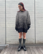 ・グラデーション調のダイヤ柄ジャカードが目を引くクルーネックニット。