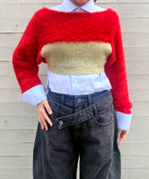 トップスにもマフラーにも、上下逆さでも着用可能なマルチウェイアイテム。長めの毛足とモヘア風の編み地は思わず撫でたくなります。