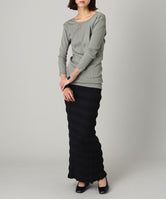 (Green)Stripe Knit Maxi Skirt|FETICO