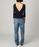 袖口の切り替えと、大胆なバックスタイルが魅力的なロングスリーブ。