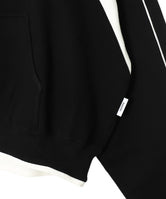 ベーシックなデザインを元に、白のステッチワークで全て縫製、「循環/アウトライン化」することで日常着の中にデザインを可視化している。