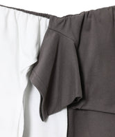 ベーシックなデザインを元に、白のステッチワークで全て縫製、「循環/アウトライン化」することで日常着の中にデザインを可視化している。