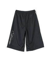 透湿性のあるモックアイレット生地を使用したオーバーサイズのバスケットボールショーツ。