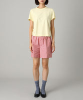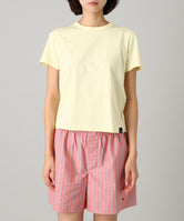 ・胸元とバックの首元に配した同色のロゴ刺繍がアクセントに。