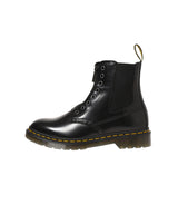 シューレースを省きすっきりとしたシルエットにアップデートされた8ホールブーツ。サイドに伸縮性のあるガセットを備え、フロントジップ付きで着脱がスムーズなジップアップブーツです。アッパーにはツヤとハリが美しい高級感のあるポリッシュドスムースレザーを使用。アイコニックなヒールループと、ウェルトのイエローステッチで仕上げています。