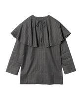 ・ケープ風の丸襟が存在感を放つデザイン。