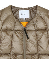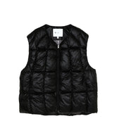 Goldwin が開発した、折り紙のようなプリーツによってダウンバッフルを立体化し暖かさを増す「3D Box Baffle」を全体に取り入れたダウンベスト。単体をアウターとして着用するほか、ジャケットの外側への重ね着にも使用できます。シルクのような光沢感があり摩擦に強いナイロン生地、Pertex Diamond Fuse を使用。