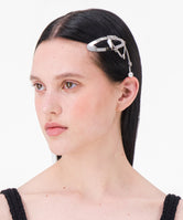 ・シルバーチェーンと形違いのパールを垂らしたヘアクリップ。