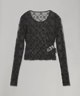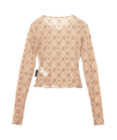 Moonogram Mesh Flock Ls Cropped Top