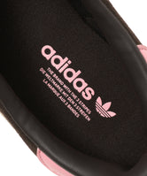 素材の上質なスエードがラグジュアリーな印象をもたらし、レザーと合成素材のアッパーが耐久性と快適さを実現する。シュータンにブランドロゴが入っているほか、ボディにガゼルのトリプルロゴの飾り彫りがあしらわれており、オーセンティックでスタイリッシュな印象が強まっている。