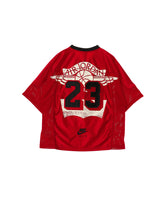 このユニフォーム トップスは、スクリーンプリントと刺繍のグラフィックを組み合わせ、Jordanとリーバイス®のモチーフに斬新なアレンジを加えている。前後に配した23のアップリケが応援するチームをアピールし、メッシュ仕様のスリーブが着用時の通気性を確保。定番のツーホース・マークのロゴをアレンジしたジョーダン ウィングスのジョックタグで仕上げた1着だ。