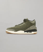 世界初のことを成し遂げなければ、長く愛される逸品として確固たる地位は築けない。エア ジョーダン 3には多くの「初」が詰まっている。Jumpmanを配した初のシューズ。エレファント プリントをあしらった初のスニーカー。ティンカーがデザインした初のJordanギア。しかも、他の偉大な存在と同様、そう頻繁にお目にかかれるシューズではない。だからこそ登場すれば特別な存在になる。このエディションは、ラグジュアリーなレザーとヌバックのアッパーを採用し、ミディアムオリーブとニュートラルオリーブの色合いが絶妙に調和している。セコイアのアクセントとエレファント プリントのオーバーレイに、セイルのミッドソールとガムミディアムブラウンのアウトソールを組み合わせて、秋をイメージした豊かなデザインに仕上げている。大胆なNike Airのヒールロゴが、1988年のオリジナルのDNAを受け継ぐクラシックなスタイルを演出する。