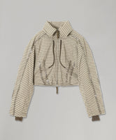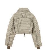 ポニーテール用の穴が開いた取り外し可能なフードとファスナー付き胸ポケットを備え、バンジーコードで完璧なフィット感を実現。さらに、全体に施されたチェック柄の縫い目のディテールとリフレクティブ(再帰反射)素材の糸が、同コレクションの2イン1スカートとマッチし、統一感のあるスタイルを叶える。