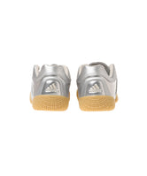 光沢のあるデザインがモダンなシルエットを演出し、アシンメトリーなシューレースがユニークな雰囲気を演出。つま先の飾りステッチとアウトソールに巻き付く形で配置されたストライプは、さまざまなルックスにマッチする視覚的な魅力を生み出す。