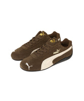 スピードキャットは、1999年に誕生し、80年代から90年代にかけてF1グランプリのドライバーが履いていた耐火レーシングシューズをベースにしたライフスタイルシューズです。レーシングにインスパイアされたなめらかなラインと空気力学に基づいたデザインにより、ファッションやスニーカーカルチャーに衝撃を与えてきました。今回、再びリリースされるスピードキャットOGは、F1レーシングチームを彷彿とさせる豊富なカラー展開とスウェード素材をふんだんに使用した仕上がりとなっています。2000年代初頭のレーシングウェアに敬意を表し、つま先には“プーマキャット”の刺繍が施され、シュータンとフォームストリップの上にはゴールドのロゴがあしらわれています。