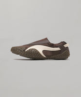 その名の通り、1960年代のスプリント用スパイクシューズと、1980年代のサーフィンシューズという、全く異なるカルチャーを大胆に融合させたハイブリッドモデルです。この異質な組み合わせから生まれた、彫刻的でアイコニックなデザインは、まるで前衛アートのような独自の存在感を放ちます。ロープロファイルのシルエットに、未来的な印象を与えるスパイク風アウトソールを組み合わせ、足元に視線を集める仕上がりに。スリップオン式の構造で着脱もスムーズ、標準幅とラウンドトゥが自然なフィット感を提供します。フラットヒールで歩きやすさにも配慮され、デイリーにもアクティブなシーンにも対応。仕上げにはプーマロゴを配置し、ブランドのエッセンスをしっかりと感じられるデザインに。“怪物”の名を持つ、この革新的な一足で、日常のスタイルに大胆なエッジを。