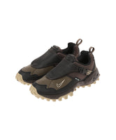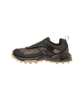 グシューズが帰ってきた。テントのフラップからヒントを得たシュラウドでシューレースを覆い、すっきりとした見た目に仕上げた一足だ。アイアンストーンとブラックをまとった、つま先とマッドガードを包み込む高密度のオーバーレイが質感と耐久性を高める。気温が上昇した時には、優れた通気性と快適さを保つのにメッシュ裏地が力を発揮。さらに、丈夫なアウトソールのおかげでトレイルはもちろん、街中でもランを楽しめる。