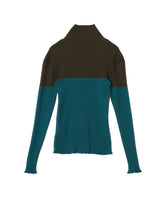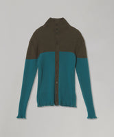 ・フロント開きのコンパクトなシルエットのハイネックリブカーディガントップ