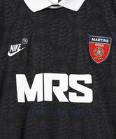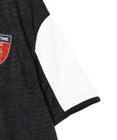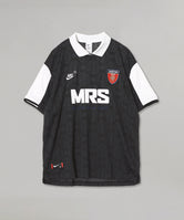 Nikeのアイコニックな90年代のサッカーユニフォームのトップスをMartine Roseがアレンジ。Martine RoseのSwooshの円形柄をジャガード地で全面にあしらい、ラグランスリーブと正統派のジョックタグを備えたデザインだ。フロントとバックに施した、Martine RoseのエンブレムとMartine Rose・Sportsのグラフィックが、仕上がりをさらに引き立てる。どんなゲームであれ、このユニフォームを羽織れば、競争心に火がつくだろう。