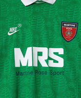Nikeのアイコニックな90年代のサッカーユニフォームのトップスをMartine Roseがアレンジ。Martine RoseのSwooshの円形柄をジャガード地で全面にあしらい、ラグランスリーブと正統派のジョックタグを備えたデザインだ。フロントとバックに施した、Martine RoseのエンブレムとMartine Rose・Sportsのグラフィックが、仕上がりをさらに引き立てる。どんなゲームであれ、このユニフォームを羽織れば、競争心に火がつくだろう。
