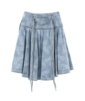 <Archive Sale>Blue Allover Printed Flare Denim Long Sk