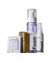 利便性を重視し、すぐに使える「7oz R-T-U FOAM」、雨や汚れからスニーカーを守る撥水スプレー「MINI REPEL」、傷みやすい素材に最適な「PREMIUM SHOE CLEANING BRUSH」と、いつでもどこででも使えるペーパークリーナー「QUICK WIPES 3P」が含まれたセットになります。