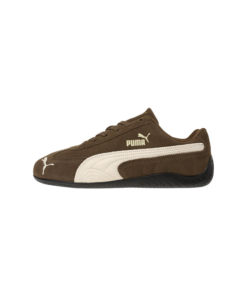スピードキャットは、1999年に誕生し、80年代から90年代にかけてF1グランプリのドライバーが履いていた耐火レーシングシューズをベースにしたライフスタイルシューズです。レーシングにインスパイアされたなめらかなラインと空気力学に基づいたデザインにより、ファッションやスニーカーカルチャーに衝撃を与えてきました。今回、再びリリースされるスピードキャットOGは、F1レーシングチームを彷彿とさせる豊富なカラー展開とスウェード素材をふんだんに使用した仕上がりとなっています。2000年代初頭のレーシングウェアに敬意を表し、つま先には“プーマキャット”の刺繍が施され、シュータンとフォームストリップの上にはゴールドのロゴがあしらわれています。