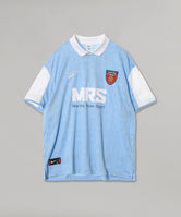 Nikeのアイコニックな90年代のサッカーユニフォームのトップスをMartine Roseがアレンジ。Martine RoseのSwooshの円形柄をジャガード地で全面にあしらい、ラグランスリーブと正統派のジョックタグを備えたデザインだ。フロントとバックに施した、Martine RoseのエンブレムとMartine Rose・Sportsのグラフィックが、仕上がりをさらに引き立てる。どんなゲームであれ、このユニフォームを羽織れば、競争心に火がつくだろう。